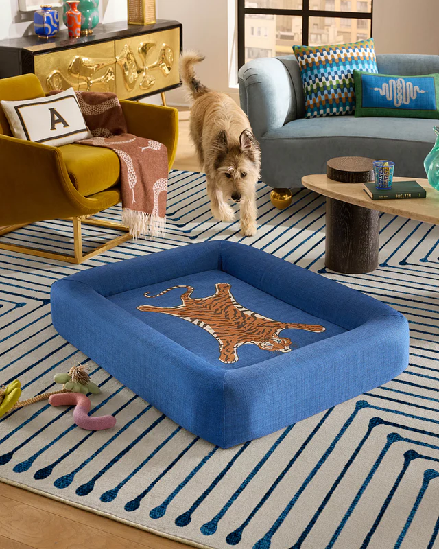 One of the standout features of this pet bed is its practicality. The removable cover makes cleaning a breeze – simply unzip, wash, and refresh the bed to keep it looking and smelling fresh. The dark blue hues and timeless woven pattern ensure this bed complements any interior setting, whether placed in a living room, bedroom, or pet-specific nook. Lightweight and portable, the Tiger Blue Woven Bolster Pet Bed can easily accompany you wherever you go, so your pet never has to compromise on comfort.